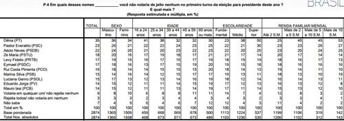 O relatório completo da última pesquisa Datafolha, realizada nos dias 28 e 29 de agosto, que provocou uma onda de compreensível nervosismo em todas as campanhas (exceto na de Marina, onde gerou também compreensível entusiasmo), acaba de ser publicado.