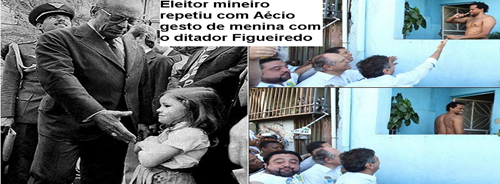 Nada a ver uma imagem com a outra. Figueiredo olha de cima para baixo pra menininha, Aécio está embaixo demonstrando humildade, enquanto o camarada sem camisa mesmo sendo um fodido quer esnoba-lo!