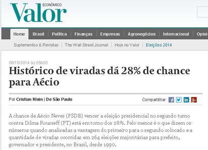 Ah, Miguel, eu não faço esses cálculos de votação baseada em condições normais. A espetacular votação do Aécio saiu das urnas eletrônicas. É bom não esquecer que essa é a eleição do vale tudo.