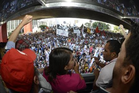 Uma passeata com 60 mil professores tomou as ruas centrais da capital paulista na tarde desta quinta-feira (2). Alegres, irreverentes e pacíficos, os grevistas criticaram a intransigência do governador de São Paulo — “uma vaia para o Geraldo Alckmin” — e expressaram sua indignação diante da cobertura “jornalística” das emissoras de rádio e televisão — “uma vaia para a Globo”, grita um líder no caminhão de som e milhares repetem “fora Rede Globo, o povo não é bobo” e “A verdade é dura, a Rede Globo apoiou a ditadura”.