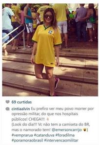 Coxinha que defende intervenção militar divulga foto na manifestação e abre o jogo: “Prefiro ver meu povo morrendo por opressão militar do que nos hospitais públicos! CHEGA!!!”