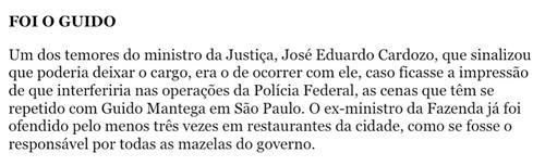 Sintomático que a entrevista se dê imediatamente após ao processo de auto-fritagem que o ministro da Justiça, José Eduardo Cardozo, protagonizou semana passada.