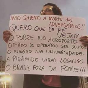 procura mulher pelada no encontro de esquerda,procura cartases de odio,procura ofensas,procura gente baixando as calcas e mostrando a bunda! e bem diferente ter conteudo sinto muita pena de vc,masss se odeia tanto dilma e o lula entao renuncia vc ao teu seguro desemprego as 8 horas de trabalho,a ferias,a aposentadoria,ao licenca maternidade da tua mulher kkkkkk isso nao quer ne?pq quem conquistou isso foi a esquerda apanhando da policia p vc trabalhar so 8hs por dia hipocrita!!!!!!!!
