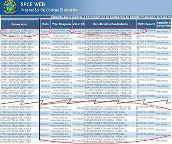 Antes dessa modificação no registro de atividades da empresa, a campanha de José Serra a prefeito de São Paulo em 2012 usou os serviços da gráfica. A VTPB emitiu 21 notas fiscais para o PSDB, sendo 20 delas para o Comitê Financeiro para Vereador PSDB-São Paulo, e uma para o Comitê Financeiro para prefeito PSDB-São Paulo.