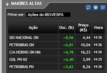 A bolsa continua subindo, com destaque para a Petrobras e Companhia Siderúrgica Nacional, cujas ações estão registrando altas de 8 %e 6% respectivamente, neste momento.