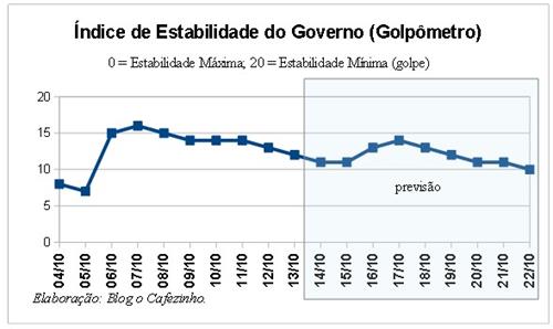 The “coupometre” is still indicating the same for the next following weeks. The possibility of a successful coup is getting weaker this week as the opposition faces the reality of the Congress’ regiment, which makes it really difficult for their coup inspired utopias to prosper. The “coupometre” might hit a higher mark at the weekend, due to the usual forged scandals, but it should stabilize again throughout the upcoming week.