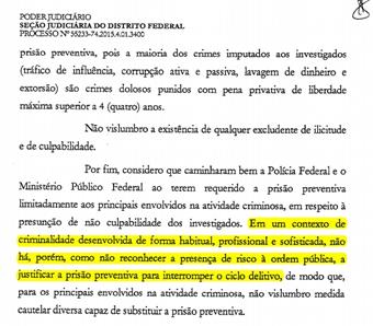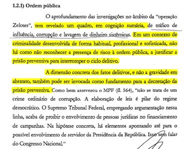 Seria extremo deduzir que o documento foi escrito pelo próprio juiz da Lava Jato e apenas assinado pela juíza da 10ª Vara Federal de Brasília. Entretanto, é possível constatar que a magistrada apropria-se de termos usados pelo juiz em seus despachos para argumentar a prisão preventiva de seis envolvidos – sendo Sergio Moro no marco da Justiça brasileira a jurisprudência mais farta para tratar de prisões preventivas e temporárias, com o intuito de conseguir as chamadas colaborações das delações premiadas – que são o próximo objetivo da Zelotes.