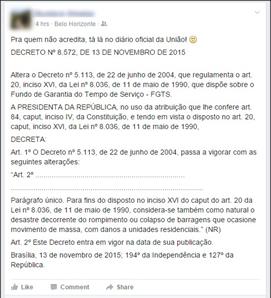 “O “polêmico” decreto nº 8.572/2015 serve, portanto, para assegurar às vítimas de desastres decorrentes de rompimento de barragens a possibilidade de sacar o FGTS.