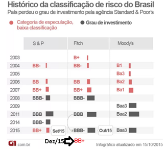 Ou seja, nós só atingimos o grau de investimento a partir de 2008, no segundo mandato do governo Lula, em plena crise financeira mundial. A própria agência admite que a crise política é um dos principais fatores que nos levou ao rebaixamento.