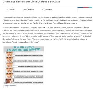 Na página do jornal do interior paulista, ainda se vê a postagem que Motta Luiz reproduziu com acusações caluniosas baseadas em mentiras, a começar pelo título: “Oi, eu sou o Chico e eu vivo dos seus impostos”. Relaciona então possíveis benefícios que parentes e a namorada do cantor teriam recebido através da Lei Rouanet para concluir: “Se Dilma cair eu vou perder a minha boquinha – Não ao Golpe. Dilma fica”.