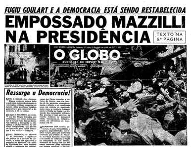 Em 1964, quando o golpe militar é desferido no Brasil, os editoriais dos jornalões tinham todos o mesmo título: Ressurge a democracia.
