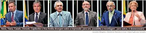 Quando a proposta chegou ao Plenário do Senado, em setembro, um grupo de senadores, capitaneado por Aécio Neves (PSDB-MG), propôs a retomada da impressão do voto. Aécio argumentou que o processo de votação não deveria ser concluído até que o eleitor pudesse checar se o registro impresso é igual ao mostrado na urna eletrônica. O veto foi derrubado em novembro do ano passado.