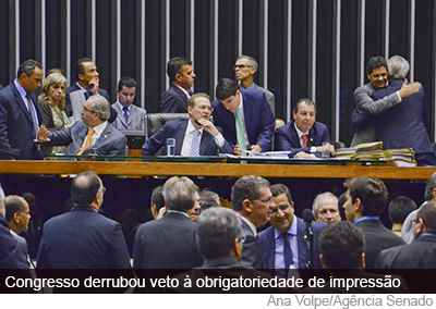 No dia 18 de novembro, o Congresso derrubou o veto da presidente: 368 deputados e 56 senadores votaram pela retomada do voto impresso.