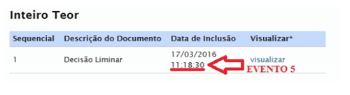 Os eventos narrados até aqui podem ser consultados na aba “Movimentação” da pesquisa processual. Cabe registrar que o sistema de acompanhamento processual permite consulta a outras 6 (seis) abas, dentre as quais está a de “Inteiro Teor”. É nela que se encontra informação aterradora: a decisão liminar foi incluída no sistema às 11:18:30 (EVENTO 6), 4min19s (QUATRO MINUTOS E DEZENOVE SEGUNDOS) ANTES de o processo ter sido encaminhado concluso para o juiz decidir!