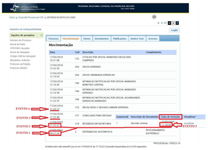 O primeiro fato impressionante é que, às 11:23:17 (EVENTO 4 – Cod. 153), foi registrada no sistema a movimentação indicando a devolução do processo à Secretaria com a decisão liminar proferida. Isso significa que em 28 (vinte e oito) segundos – das 11:22:49 às 11:23:17 – a Secretaria da Vara remeteu o processo ao magistrado, ele analisou os autos, construiu a decisão e enviou de volta os autos à Secretaria.