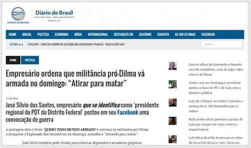 “Presidente do PDT ordena que militância pró-Dilma vá armada no domingo: ‘Atirar para matar'”, do site Diário do Brasil (4º lugar, com 65.737 compartilhamentos).