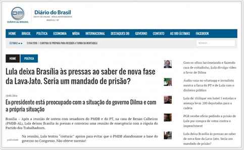 “Lula deixa Brasília às pressas ao saber de nova fase da Lava-Jato. Seria um mandado de prisão?”, do site Diário do Brasil (5º lugar, com 58.601 compartilhamentos).