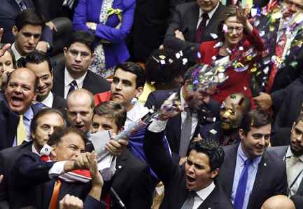 O site do semanário alemão Die Zeit afirma que a votação na Câmara “mais parecia um carnaval” e que uma pessoa desavisada que visse a sessão não poderia ter ideia da gravidade da situação. “Nesse dia decisivo para o destino político da sétima maior economia do mundo, o que se viu foram horas de deputados aos berros, que se abraçavam, tiravam selfies e entoavam canções”, relata o correspondente Thomas Fischermann.