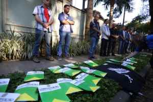 O movimento popular Levante Popular da Juventude realizou, na manhã desta quinta-feira (21), um escracho para denunciar publicamente o golpe político do vice-presidente Michel Temer (PMDB – SP).