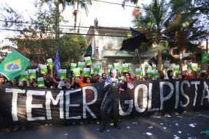 Para Thiago Pacheco, do Levante em São Paulo, o golpe em curso no Brasil não tem justificativa alguma. “A atual presidente não cometeu crime algum, por isso estamos aqui denunciando o golpe. Tentando tomar de assalto a presidência, Temer é um dos principais articuladores do golpe brasileiro. Queremos que a Dilma termine o seu mandato, que foi eleito de forma democrática”.