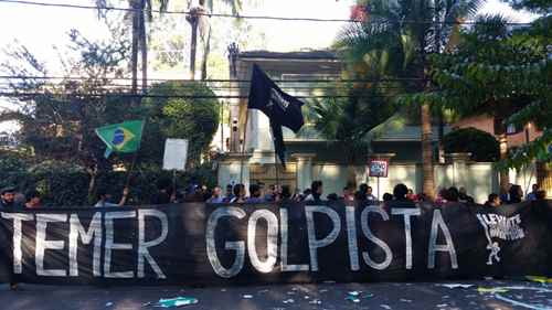 Photo: Escracho protest outside Palácio do Jaburo, official residence of the golpista Michel Temer. Credit: Mídia Ninja).