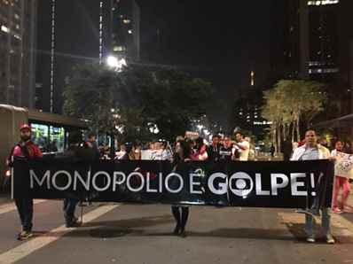 Aconteceu hoje (05/05) ato no vão livre do MASP contra a mídia golpista (Abril, Globo, Folha de São Paulo e Estadão) e a monopolização dos meios de comunicação. O protesto foi organizado pela Frente Brasil Popular e a FNDC. O ato caminhou até a Gazeta para enterrar o caixão da mídia golpista.