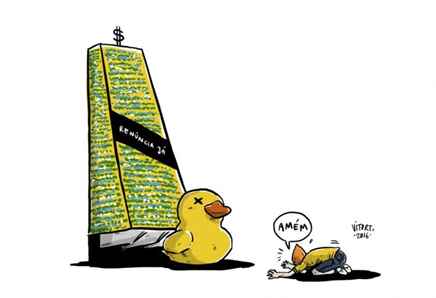 Pata aqui, pata acolá: quem vai pagar o pato da corrupção? Certamente ninguém, todos os corruptos serão beneficiados com o fim da CGU. Mas, os responsáveis pelo fim da CGU são todos aqueles que apoiaram o impedimento da presidenta honesta e democraticamente eleita para colocar um réu e ficha-suja. Ademais, o que esperavam de alguém comprovadamente condenado por práticas ilegais na vida pública? O pato pateta pintou o caneco! Portanto, não aleguem desconhecimento ou falta de culpa.