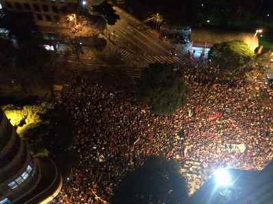 (Foto de manifestação desta sexta-feira em Belo Horizonte, contra o golpe, e que foi receber a presidenta Dilma. Quantas pessoas Michel Temer consegue reunir?).