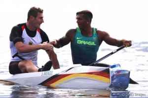 Mais emocionante ainda que a disputa no salto com vara, que na categoria feminina teve nova eliminação decepcionante de Fabiana Muhrer, foi a prova dos 1000 metros da canoa individual, em que o baiano Isaquias Queiroz disputou o ouro cabeça a cabeça com o alemão Sebastian Brendel até quase o fim da corrida na Lagoa Rodrigo de Freitas, mas acabou ficando com a prata. O bronze ficou com Serghei Tarnovski, da Moldávia. Isaquias é de Ubaitaba, que em tupi-guarani significa “Cidade das Canoas”. “Lá quem não rema não vive”, dizia, rindo, o atleta que, como Thiago, conquistou para o Brasil a primeira medalha na modalidade. No pódio, Isaquias chorou, se emocionou e prometeu mais. Ele ainda disputará duas provas: a canoa individual nos 200 metros e a canoa dupla nos 1000 metros.