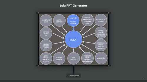 Agora qualquer um pode criar facilmente uma apresentação em Power Point sobre o ex-presidente Lula, graças ao Lula PPT Generator. Clique aqui e faça a sua!