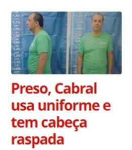O curioso é que ao colocar a imagem de Sérgio Cabral sendo fotografado na cadeia, a Globo faz a seguinte chamada: Preso, Cabral usa uniforme e tem a cabeça raspada.