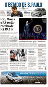 A barbárie nas prisões, aliás, já sumiu da primeira página do Globo. Na Folha, ela aparece na chamada na qual, “em vídeo, policial sugere que preso seja decapitado”. E no Estadão, na página aí ao lado, é que ganha foto, ainda, com a imagem da mãe desesperada com a transferência do filho preso, de Itacoatirara para Manaus, onde, diz a legenda, ele “foi ameaçado por outros detentos”. A foto da mãe desesperada vem na capa em contraste com um Obama um pouco mais pra cima que o da Folha e o do Globo, talvez pela possibilidade, ainda pequena, de manter um legado de sua administração que sobreviva a Donald Trump, pelo menos de acordo com o editorial de hoje do New York Times.