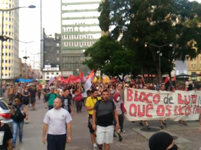 Nesse momento, um protesto em Porto Alegre contra o aumento das passagens começa a engrossar.