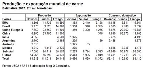 Excelente artigo. Faço uma nota somente a interpretação da primeira tabela:”São três tabelas. A primeira mostra o ranking mundial de produção, exportação e consumo doméstico de carne. Note que o Brasil é líder nos três itens. É grande produtor, grande exportador e grande consumidor.”