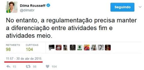 A turma da Fake News começou a divulgar um twitter da Dilma defendendo o “PL da Terceirização”.