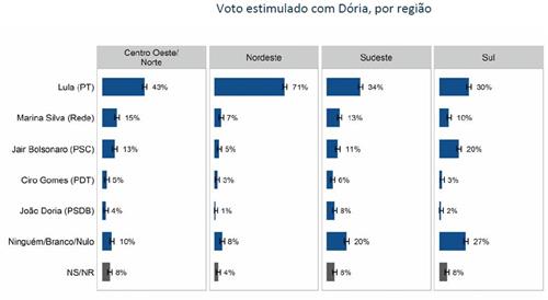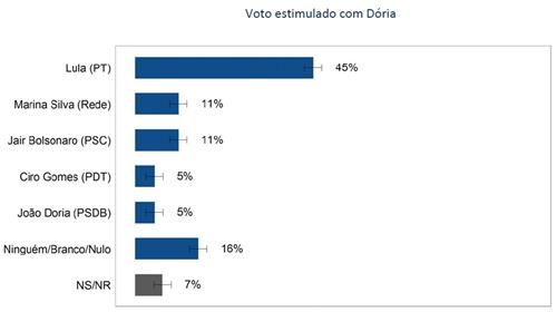 Dória ainda não é conhecido. O gráfico acima sugere uma possibilidade estranha: um segundo turno entre Lula e Bolsonaro.