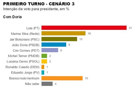 A Folha não cansa de iludir os fiéis do Lula, kkkk. O que quase não se divulga é que o Lula tem 30% de intenções (como sempre teve, são os eleitores fiéis da esquerda que votariam até num jumento se o Lula assim indicasse) e 40% de rejeição, que é o resto do povo. Interessante destacar a degringolada de nomes como Aécio e Alckmin. Isso mostra que diferente do que os “intelectuais” de esquerda afirmam em suas “análises”, as pessoas de direita, de centro, não são nenhum pouco alienadas nem idiotas, como afirma a esquerda. Só foi os candidatos serem citados as pessoas já recuaram em suas intenções de voto. O Lula que já foi citado dezenas de vezes, já está indiciado em 5 processos… ainda assim as pessoas de esquerda continuam votando no cara. O que mostra que diferente do que a esquerda diz, idiotas alienados são os eleitores do Lula, da esquerda (os 40% de sempre). É bastante gritar: foi golpi!, Globo golpista!… os alienados já se convencem