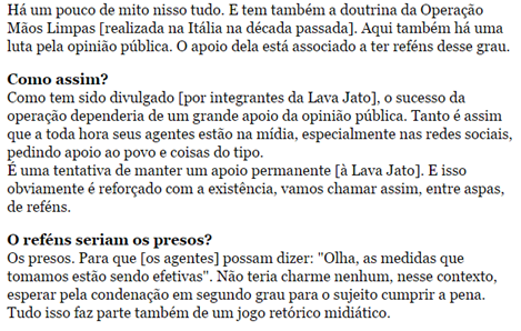 O interesse da Globo caiu como uma luva na estratégia da dobradinha Moro/Ministério Público (ilegal e imoral, pois a separação entre juiz, acusação e defesa é requisito básico em um processo penal justo) de utilizar a mídia para angariar apoio na opinião pública deslegitimando lideranças políticas. Essa estratégia foi explicitada pelo próprio Sérgio Moro em artigo publicado em 2004.