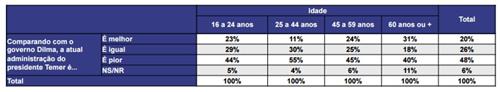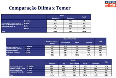 Separamos algumas tabelas ainda sobre o mesmo tema: a comparação entre Temer e Dilma.