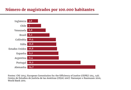 5) Reportagem do Brasil de Fato, de Rafael Tatemoto, mostra que o judiciário brasileiro é um dos mais caros e inchados do mundo. Custo muito mais que o judiciário alemão, por exemplo. Veja alguns gráficos da reportagem.