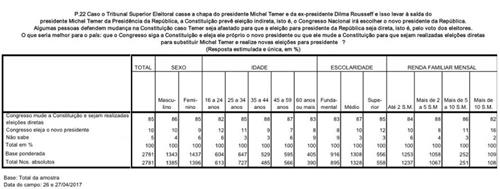 Só queria ver a cara desses 10% que preferem que o Congresso escolha. Aposto tudo que tenho que andam de quatro.