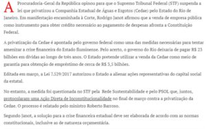 A decisão do Procurador Geral da República (PGR), Rodrigo Janot, de pedir a anulação da lei que autorizou a privatização da Cedae é uma vitória das ruas, que se mobilizaram intensamente no Rio para evitar essa barbaridade.