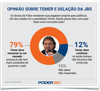 A sondagem em questão informa que 79% dos brasileiros querem que Temer seja cassado ou renuncie.