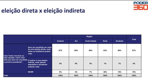 No caso do nordeste, apenas 1% dos entrevistados disseram preferir eleições indiretas, contra 90% que querem eleições diretas.