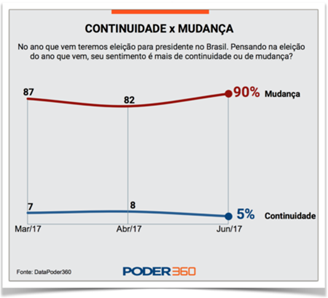 O estudo do DataPoder360, divisão de pesquisas do Poder360, foi realizado de 17 a 19 de junho de 2017. Foram entrevistados 2.096 pessoas com 16 anos de idade ou mais, em 217 municípios. A margem de erro é de 3 pontos percentuais, para mais ou para menos.