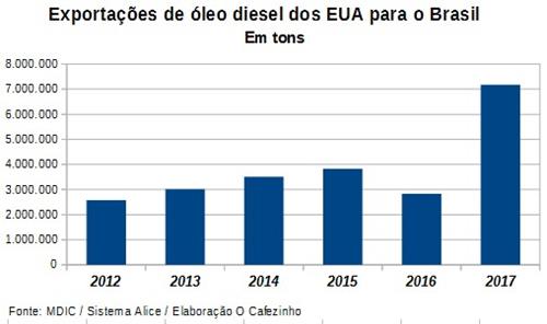 O país que mais se beneficiou desta queda na produção nacional de derivados foram os Estados Unidos, cujas exportações de óleo diesel para o Brasil cresceram 177% sobre o ano anterior.