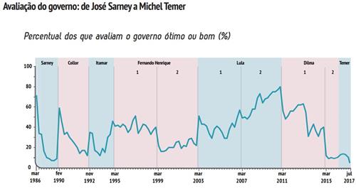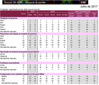 Entre quem possui ensino superior, os números também são ruins para Temer: 45% acham o governo péssimo, 90% não tem confiança no presidente, 48% acham Temer pior que Dilma e somente 13% o acham melhor que Dilma.