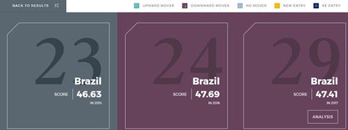 A causa da queda foi, segundo o próprio instituto responsável pelo ranking, o golpe de 2016, que fez a pontuação do governo descer ao fundo do poço (30 pontos).