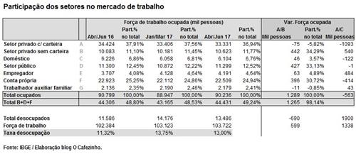 Mas os números não mentem. O trabalho com carteira assinada continua caindo. O que segurou o desemprego no segundo trimestre do ano foi o trabalho informal e o setor público.