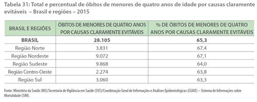 Outro dado grave: em 2015, segundo o mesmo estudo, 28 mil crianças morreram no Brasil de causas “claramente evitáveis”.